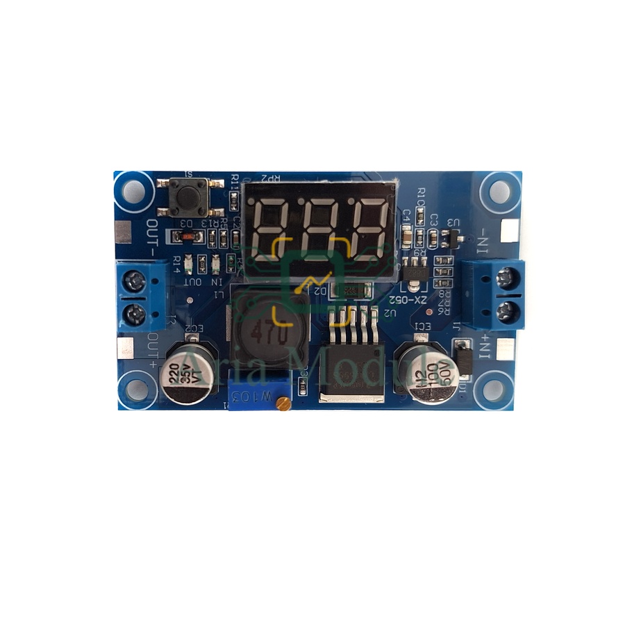 ماژول LM2596 با استفاده از مدولاسیون عرض پالس (PWM) ولتاژ ورودی را به ولتاژ خروجی مناسب تبدیل میکند. ولتاژ خروجی با تنظیم مقاومتهای متصل به پایه تنظیم قابل تغییر است. نمایشگر LCD امکان مشاهده دقیق ولتاژ و جریان خروجی را فراهم میکند.