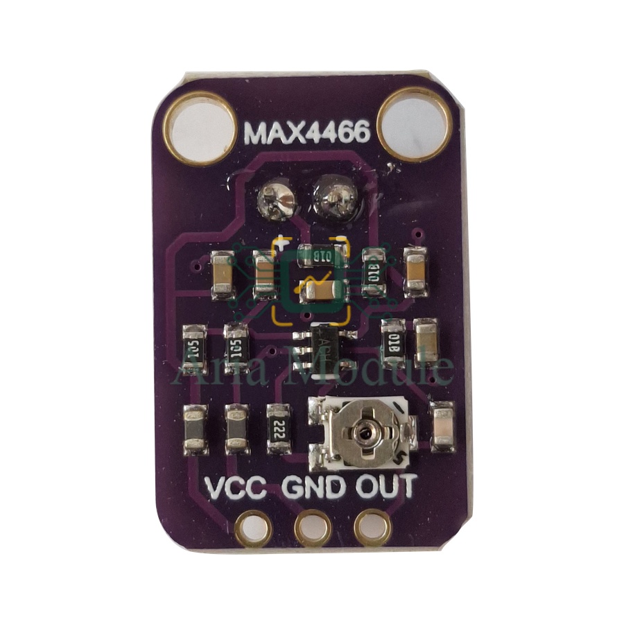 ماژول تقویت کننده میکروفون Maxim MAX4466 با قابلیت تقویت سیگنال بالا و طراحی ساده برای استفاده در پروژه های الکترونیکی مختلف.