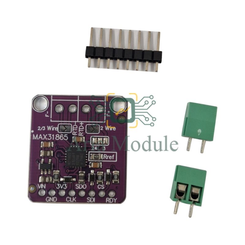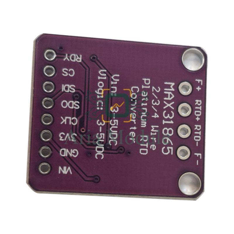 ماژول راه انداز MAX31865 مبدل RTD با قابلیت اندازه گیری دما و دقت بالا، طراحی شده برای کار با سنسورهای RTD PT100 و PT1000، ارائه اطلاعات دما از طریق پروتکل SPI.