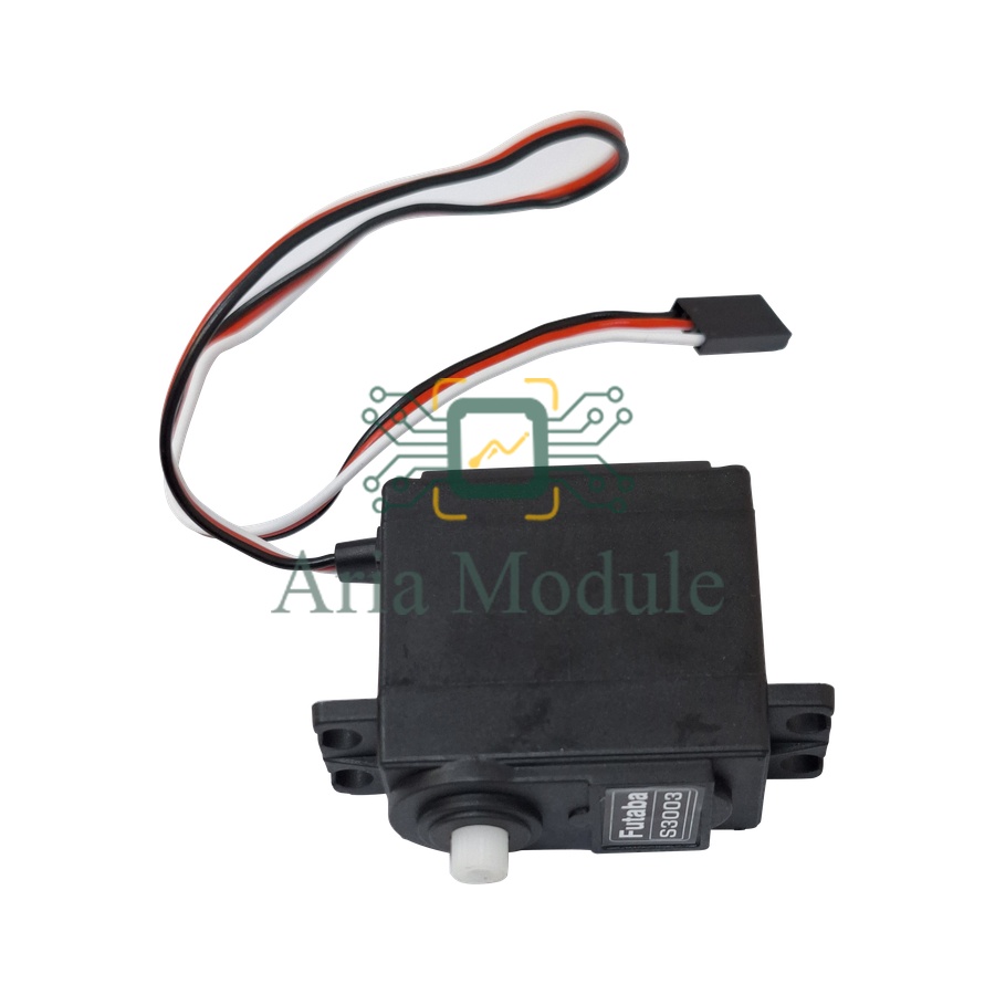 سروو موتور Futaba S3003: موتور سروو با دقت بالا و گشتاور مناسب، دارای سرعت 0.19 ثانیه برای 60 درجه و گشتاور حداکثر 3.2 کیلوگرم-سانتی متر.